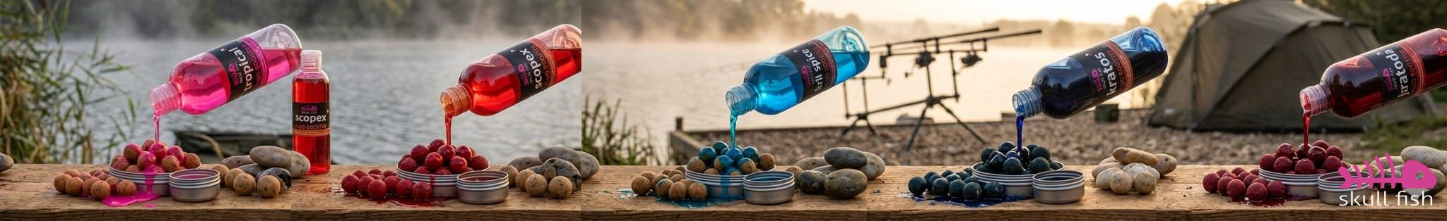 Dipy, boostery a ostatní atraktory jsou tekuté nebo práškové přísady, které slouží k jedinému – zvýšit účinnost nástrahy a krmení. Používají se na boilies, pelety, method mixy nebo přímo na háček, kde vytváří silný pachový a chuťový signál.