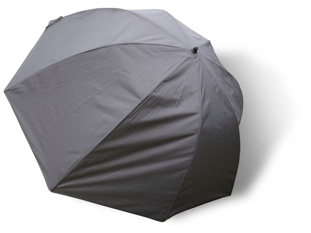 Když přijde liják a poryvy, rozhoduje stabilita a krytí. Oválný koncept Nubrolly nabízí opravdu štědrý prostor – pod střechu se bez problémů vejde i moderní kaprové lehátko 2,10 m, přičemž boční kryt drží stříkání vody dál od místa. Zapichovací hrot z aluminia je koncipovaný do extrémních podmínek a při správném zasazení drží jak skála. Konstrukčně potěší svařované spoje a mimořádně robustní tyčové ústrojí, které snese dlouhodobé zatížení. Pro práci s větrem má deštník 4 očka na kolíky, zadní napínací šňůry pro vytažení profilu a vpředu 4 adaptéry na bouřkové tyčky – z deštníku tak uděláte stabilní přístřešek. V balení najdete 4 fixační bivakové kolíky.