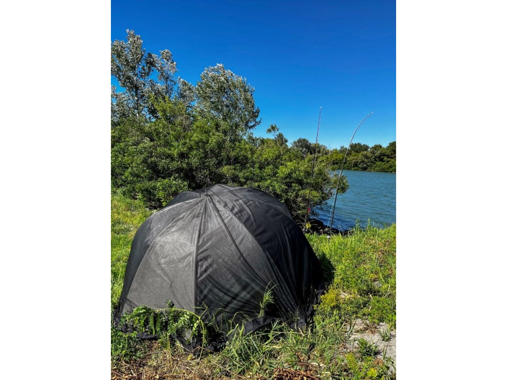 - Oválný tvar a velkorysý půdorys – komfortní krytí pro lov i odpočinek, vejde se lehátko 2,10 m.