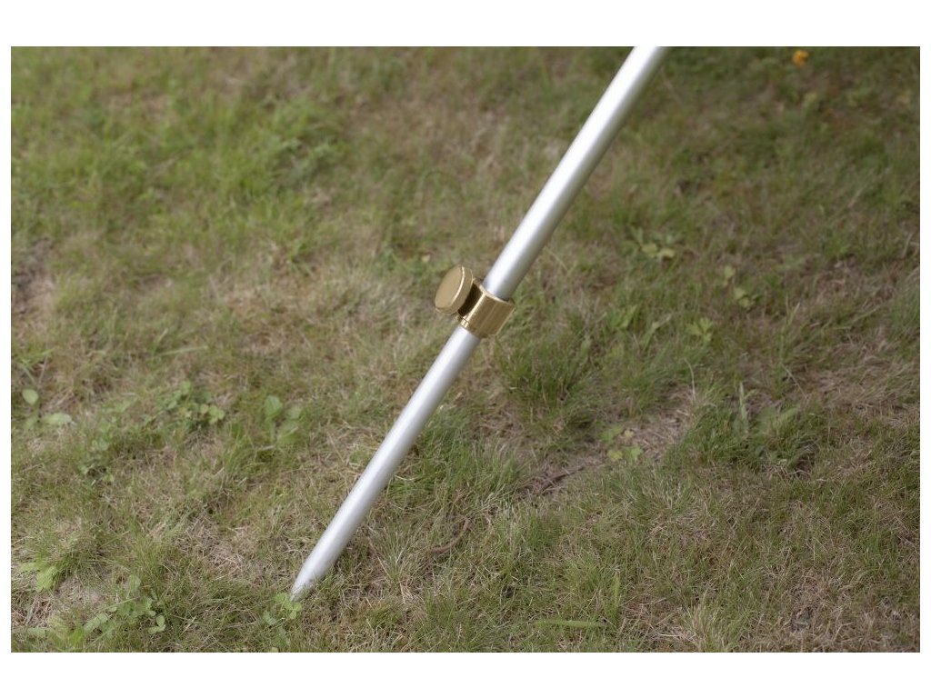 - Zasaďte alu hrot do země pod mírným úhlem proti směru větru a dorazte do pevné vrstvy.