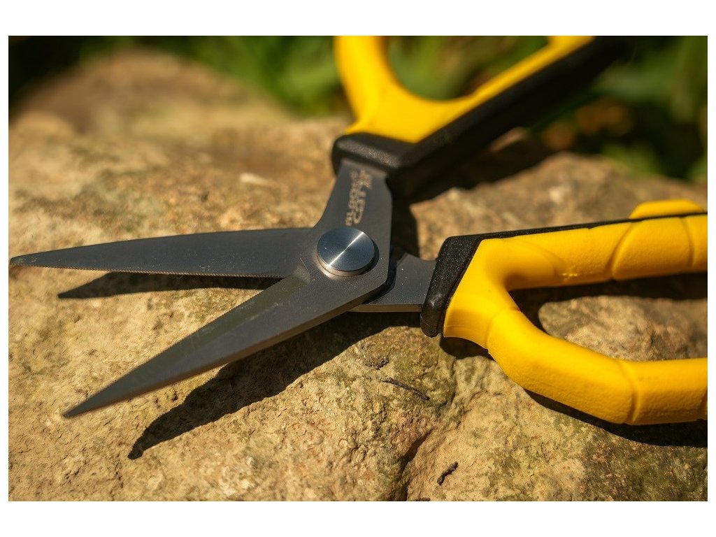 Jsou vyrobeny z nerezové oceli potažené titanem a jejich vroubkované čepele snadno stříhají pletené šnůry i monofilní vlasce a to i ve velmi silných průměrech.