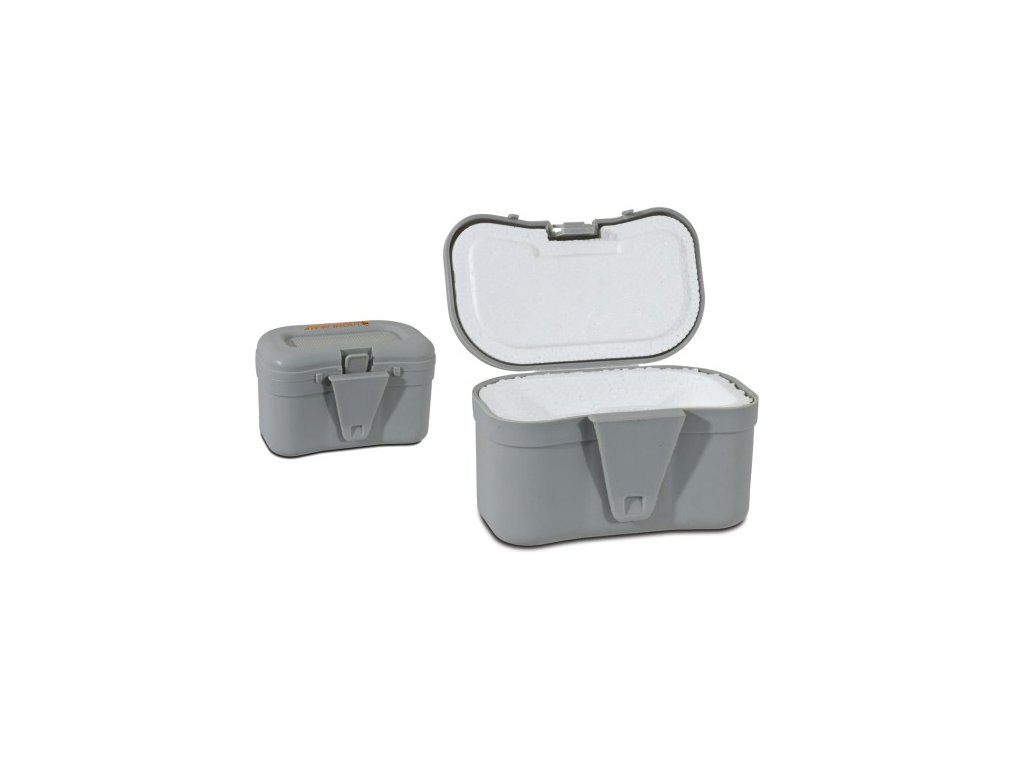 Perfektní pevný obal na živé nástrahy-vždy po ruce. velikost: 14,5 x 9 x 9 cm se sponou na opasek uvnitř izolace z polystyrenu