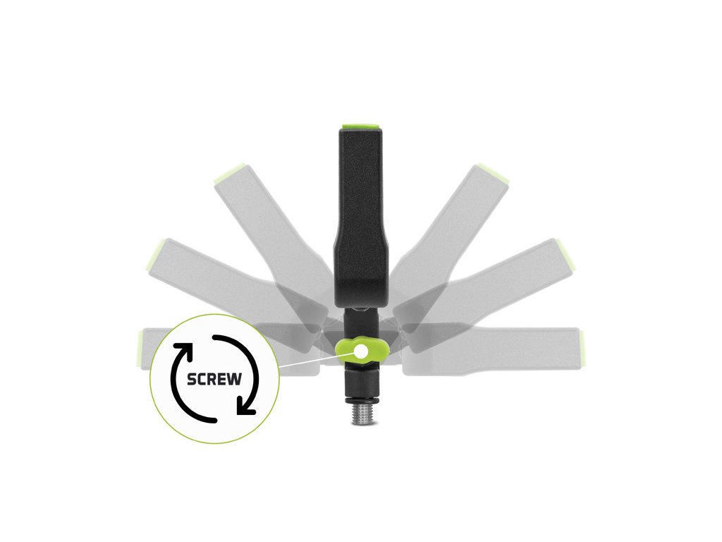 Ve spodní části je na rám připevněn plastový kloub s otočným systémem, poskytující možnost polohování držáku v různých úhlech dle vašich potřeb a dle podmínek u vody. EvaBACK disponuje také univerzálním závitem kompatibilním s většinou vidliček, feederových držáků a ramen.