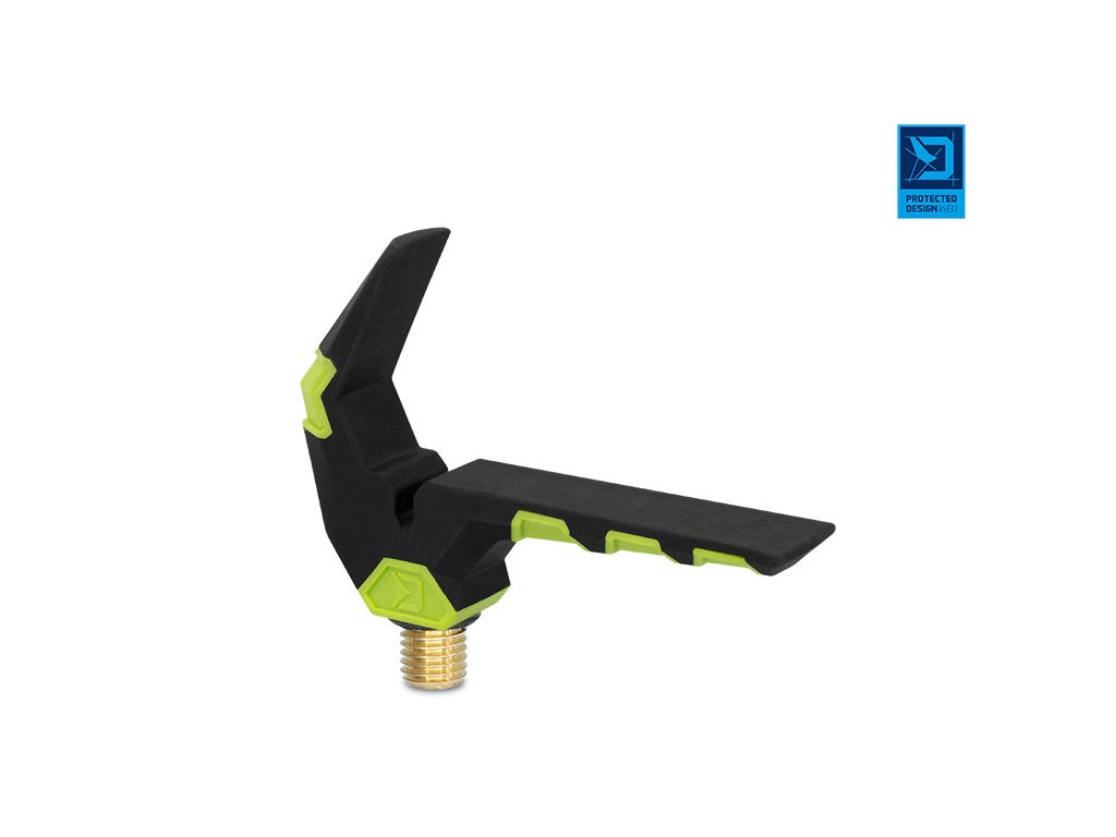 Držák je opatřen drážkou pro volný přechod vlasce, pro maximální eliminaci tření. Povrch je potažen pogumovaným materiálem, který je extra šetrný k povrchu prutu a tím předchází jeho poškození. Držák je vyroben z odolných materiálů, takže se snadno nepoškodí a nepoškrábe. Univerzální závit umožňuje uchycení na všechna standardní ramena, stojany a vidličky. Na závitové části se nachází gumová podložka, která zamezuje otáčení držáku.