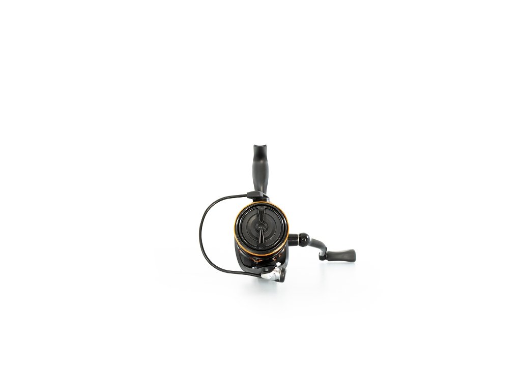 O hladký a trvanlivý chod se postará soustava až 6 kvalitních kuličkových ložisek (5+1). Černá kovová cívka s efektními oranžovými výřezy a linií na přední hraně je dostatečně hluboká a tedy pojme potřebné množství vlasce pro různé rybolovné techniky.