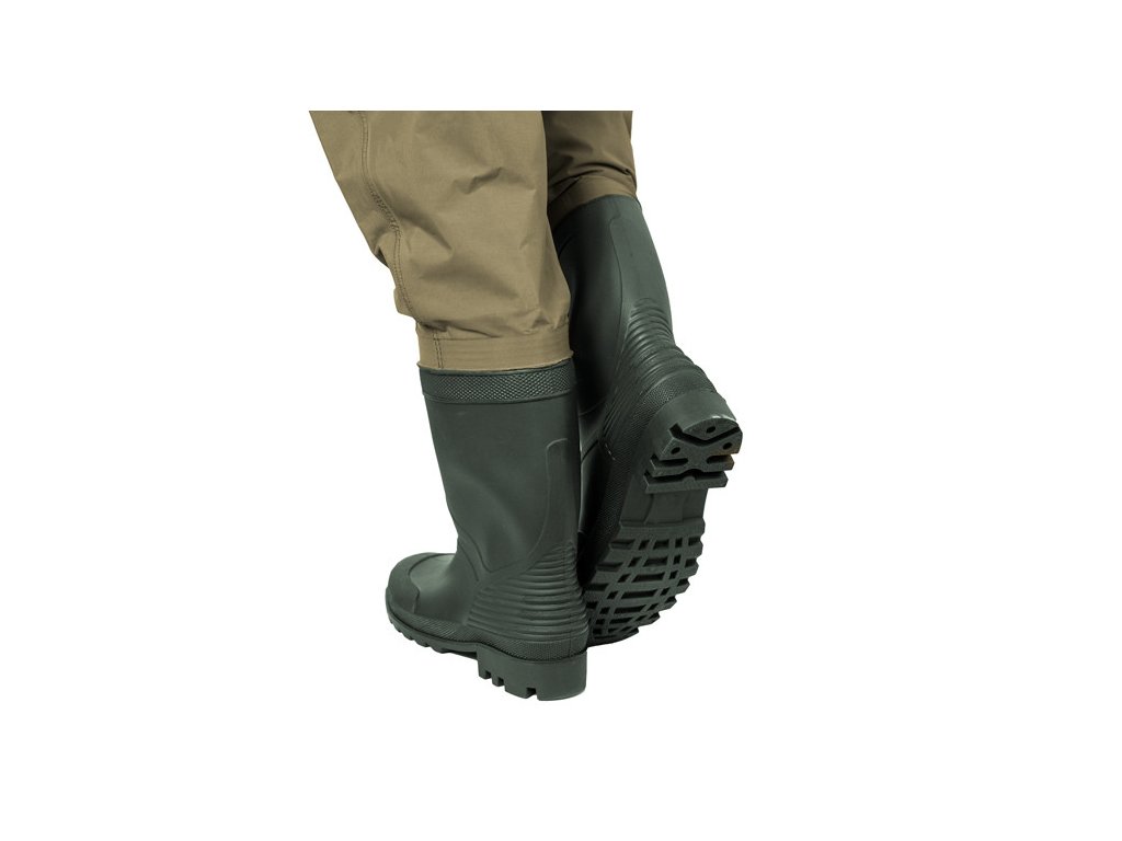 Prsačky HRON jsou vysoce spolehlivým modelem z dílny značky Delphin. Vyznačují se výbornými vlastnostmi a velmi kvalitním provedením. Každý detail je zpracován dokonale precizně. Moderní materiál zaručuje naprostou voděodolnost a zároveň pohodlné nošení díky nízké hmotnosti. Navíc uvnitř prsaček se nachází všitá síťka, která snižuje přímý dotyk kůže a vodotěsného materiálu, a tím výrazně omezuje pocení. Obrovským bonusem který je nevídaný v této kategorii je neoprenová výztuha kolen, což umožňuje například i velmi komfortní klečení ve vodě. Kromě standardních nastavitelných popruhů na ramena, disponuje tento model také vyjímatelným páskem, což umožní ještě lepší přizpůsobení postavě rybáře. Gumové holínky s odolnou a stabilní podrážkou vás podrží i v náročnějších podmínkách. Samozřejmostí jsou také výčnělky v oblasti paty pro snadnější vyzouvání.
