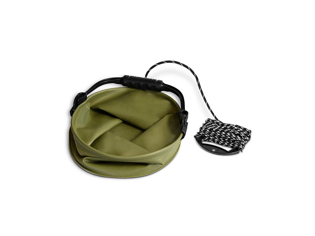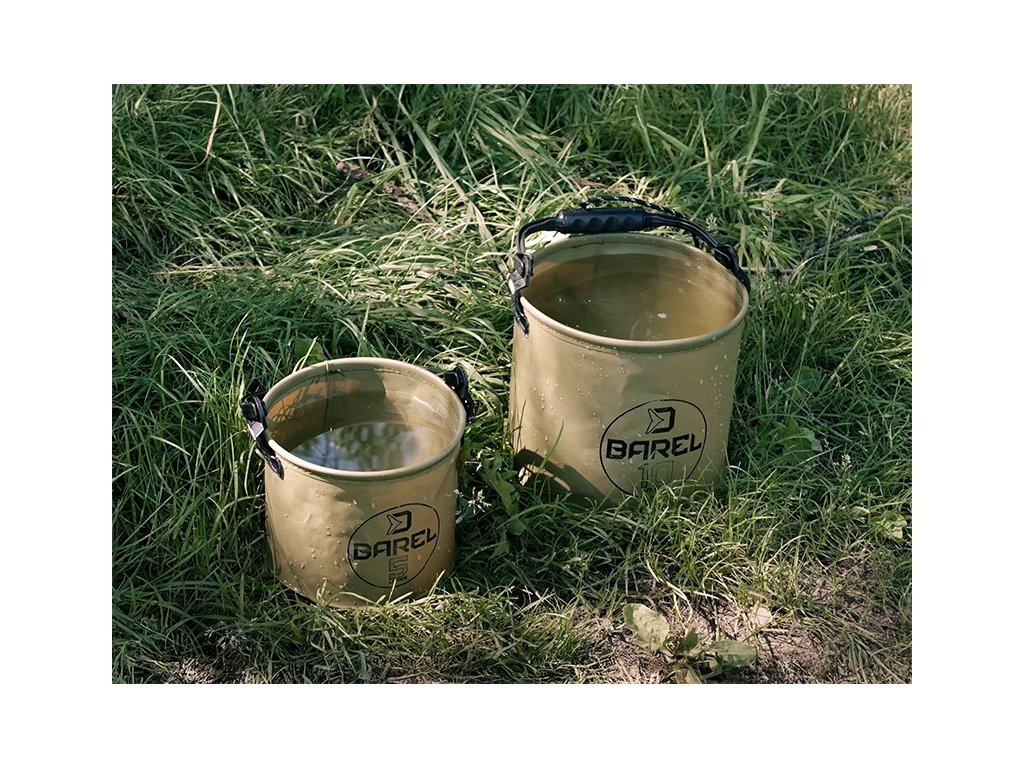 Delphin BAREL je užitečná pomůcka vyrobená z voděodolného EVA materiálu, který je pružný a ohebný a tudíž si váš kbelík můžete poskládat na naprosto minimální rozměry. Slouží hlavně k zalévání ryb na podložce těsně po jejich zdolání a během focení, avšak může být využit také jako malá zásobárna vody pro různé účely jako míchání krmiva nebo mytí rukou a také jako kterékoliv jiné vědro pro uskladnění náčiní, nástrah a podobně. Vědro BAREL je doplněno o pevnou rukojeť černé barvy s provazem, pomocí kterého je možné nabrat si vodu i z větší vzdálenosti od břehu nebo z méně přístupného břehu či člunu.