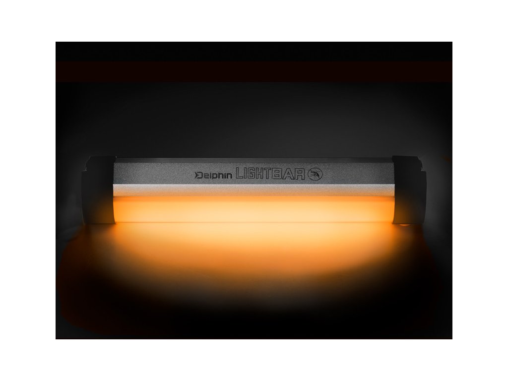 Delphin LightBAR UC je vysoce praktické bivakové světlo, díky němuž vás tma více nezaskočí. Disponuje dvěma barvami, přičemž každá z nich má několik úrovní svícení. Při prvním stisknutí se rozsvítí bílé světlo s 5% svítivostí. Druhým stiskem se rozsvítí na 30% a při třetím stlačení září bílé světlo na 100%. Při čtvrtém stisknutí se bílé světlo rozbliká, což oceníte například při vyvážce na velkých vodních plochách, kdy budete schopen jasně definovat, kde se na břehu nachází váš tábor.