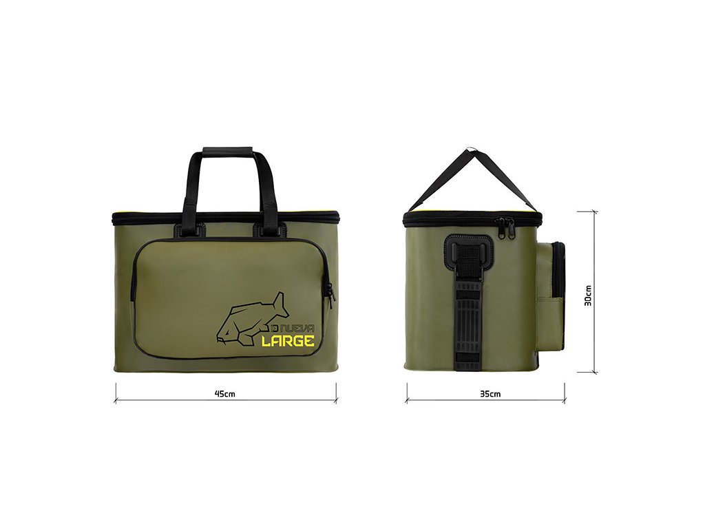CarryAll taška Delphin NuEVA Large o rozměrech 45x30x35cm je univerzální rybářská taška vyrobená z EVA materiálu, poskytující velkorysý prostor pro uskladnění nejrůznějšího rybářského vybavení či různých nástrah a návnad.