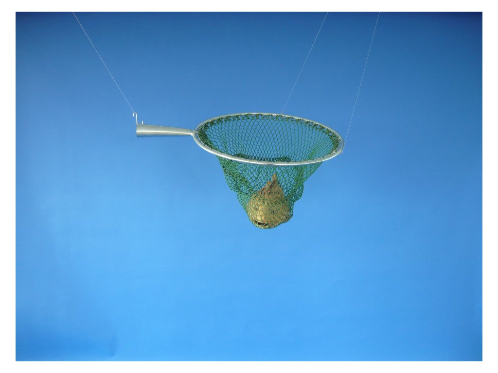 Výplet je zelené barvy, s velikostí oka 15 × 15 mm a hloubkou cca 40–45 cm, což je ideální pro bezpečné podebírání ulovených ryb bez jejich poškození.