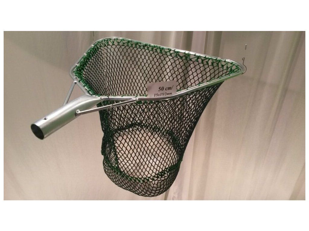 Zelený rašlový (bezuzlový) výplet z polyamidu s velikostí oka 15 × 15 mm je šetrný k rybám, nepoškozuje jejich šupiny a zároveň zajišťuje rychlé odvodnění. S hloubkou 45–50 cm je koš ideální pro bezpečné podebírání středních i větších ryb.