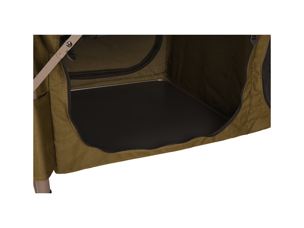 - Zelená, odolná polyesterová tkanina s přístupovými panely ze síťoviny