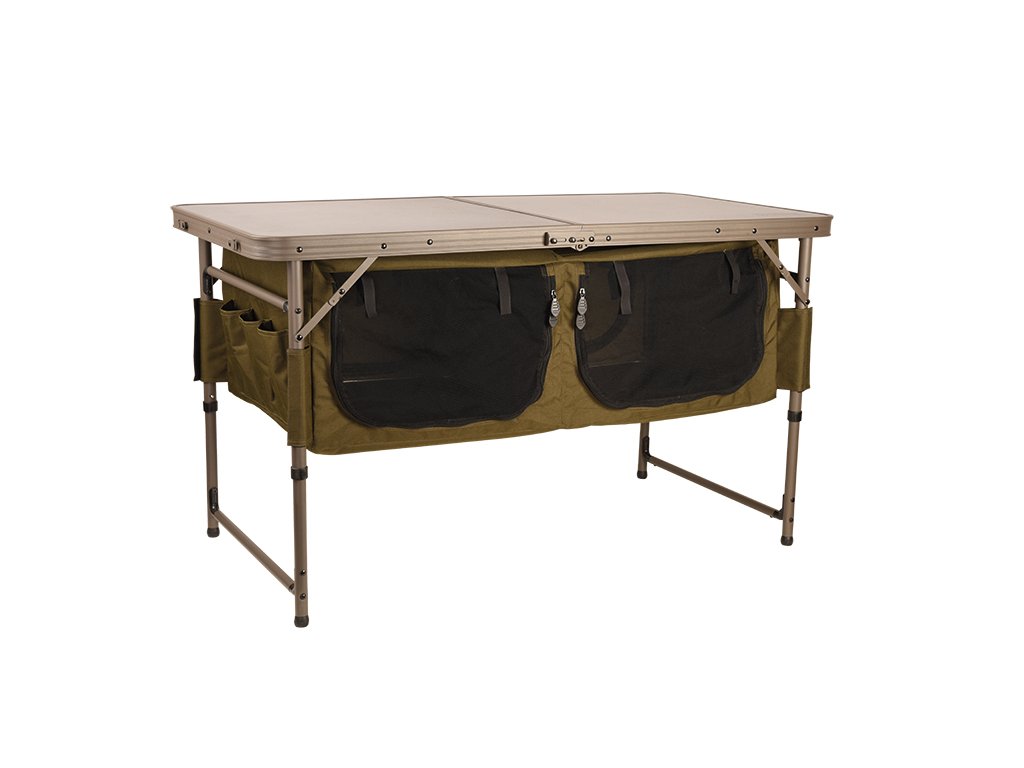 Řešení 2v1 kombinující velký stůl s úložným prostorem pro delší pobyt u vody