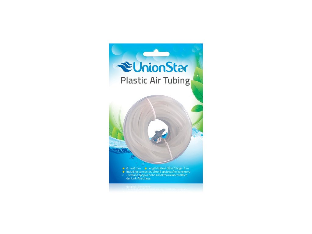 Průhledná vzduchovací hadička na rozvody vzduchu a CO2 s konektorem.