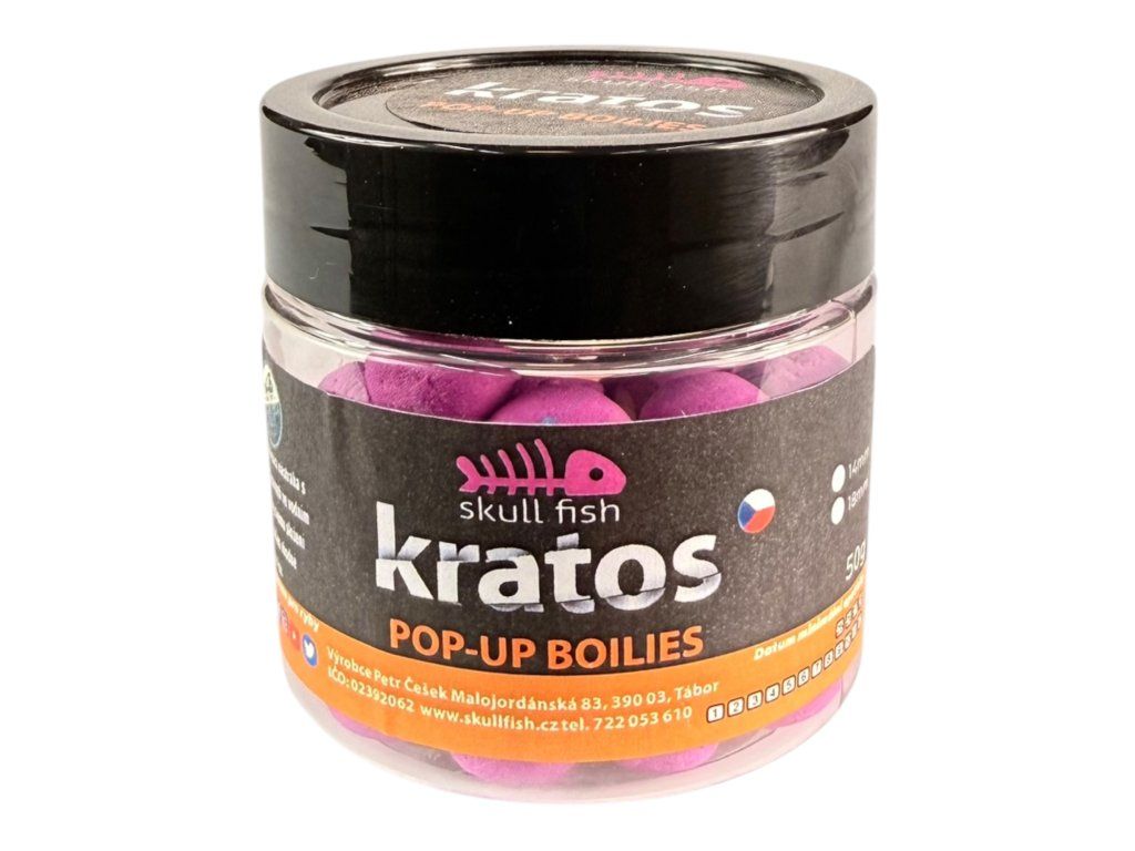 Pop-up boilies Kratos od Skullfish je plovoucí nástraha navržená pro maximální atraktivitu a rychlou reakci ryb. Díky kvalitnímu mixu z kaseinátů a mléčných proteinů má vysoký vztlak a stabilně drží nástrahu nad dnem.