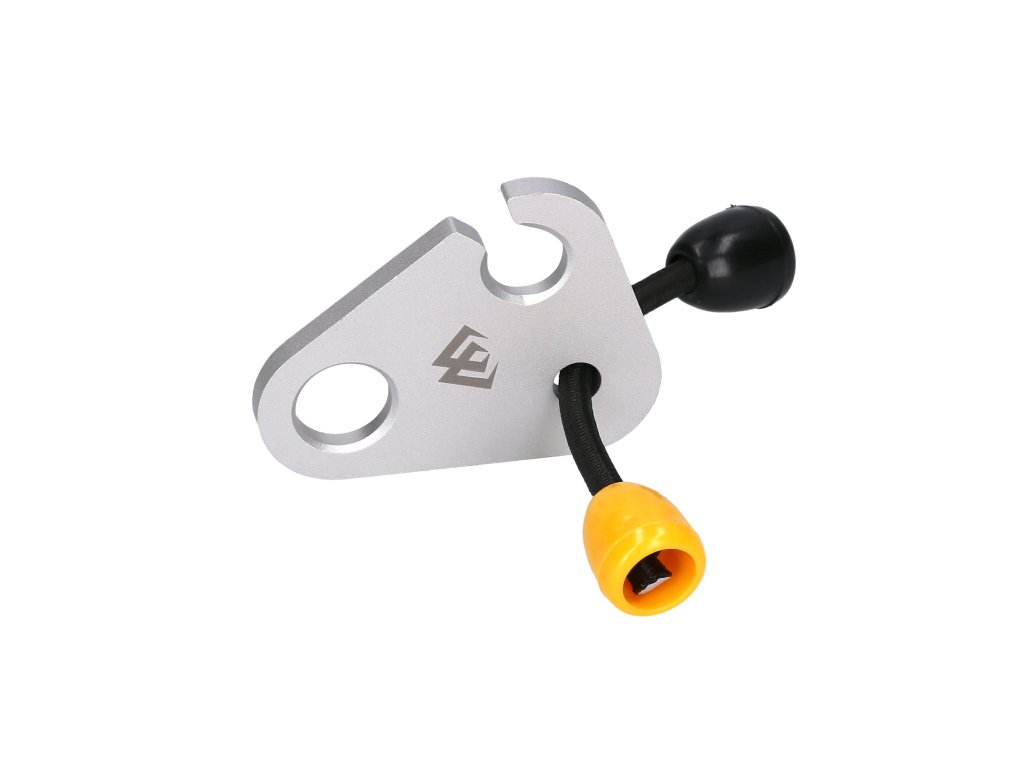 Robustní gumička připevněná k hliníkové desce připevní blank k vidličce, tím chrání prut při náhlém záběru a zároveň se pohybuje při lovu na očkách.