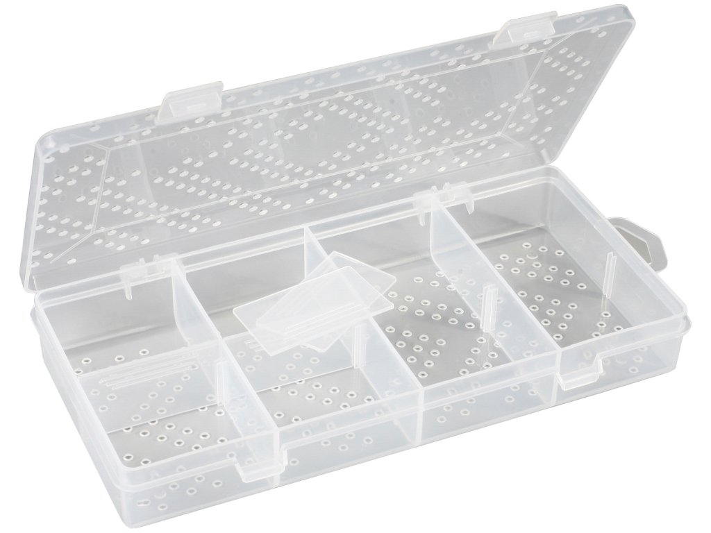 Průhledný odolný plast umožňuje kontrolu obsahu krabice bez jejího otevření.
