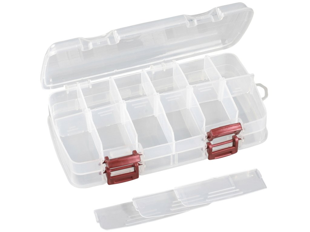 Série malých a středně velkých boxů doporučených pro uložení drobného rybářského příslušenství.