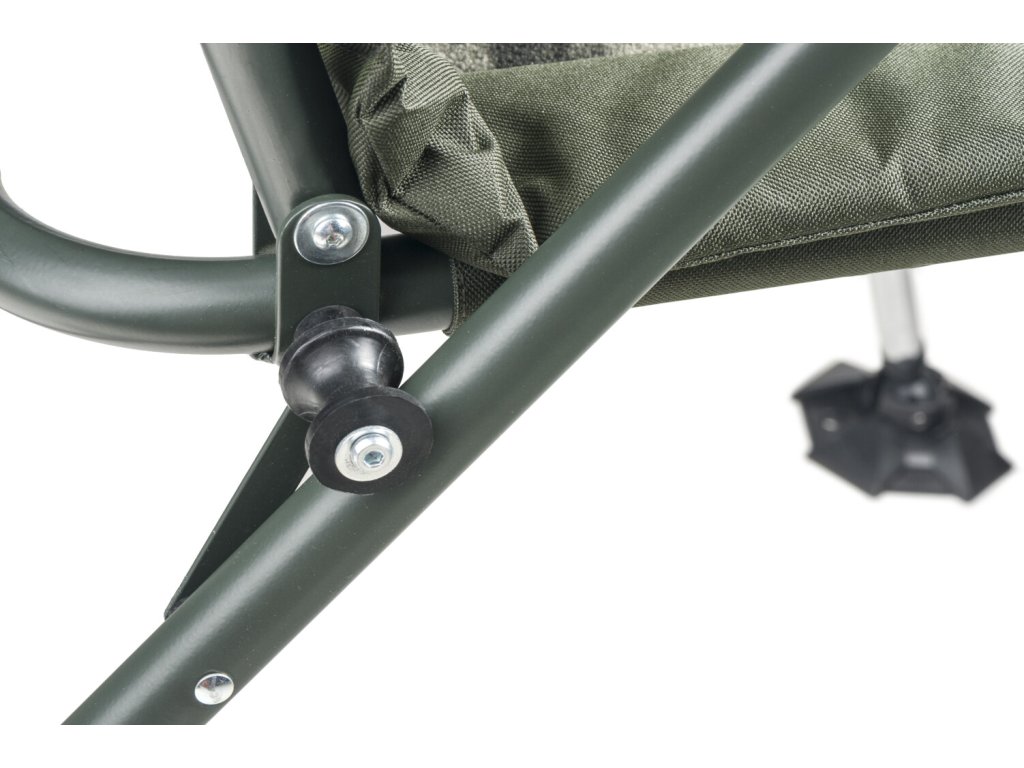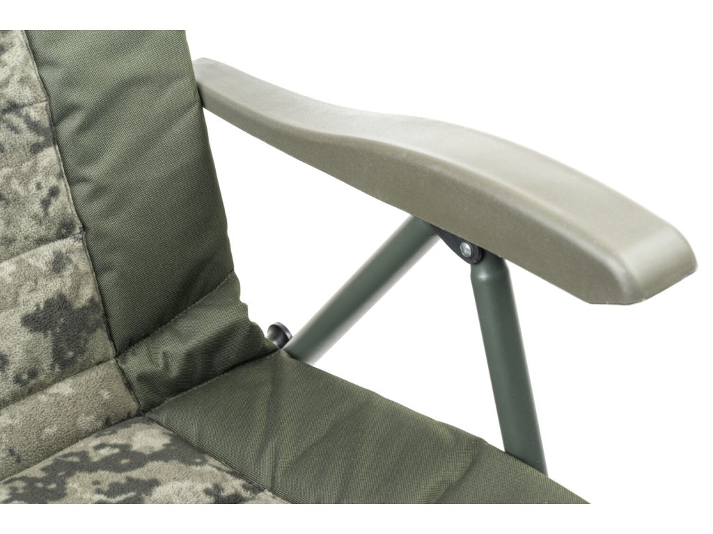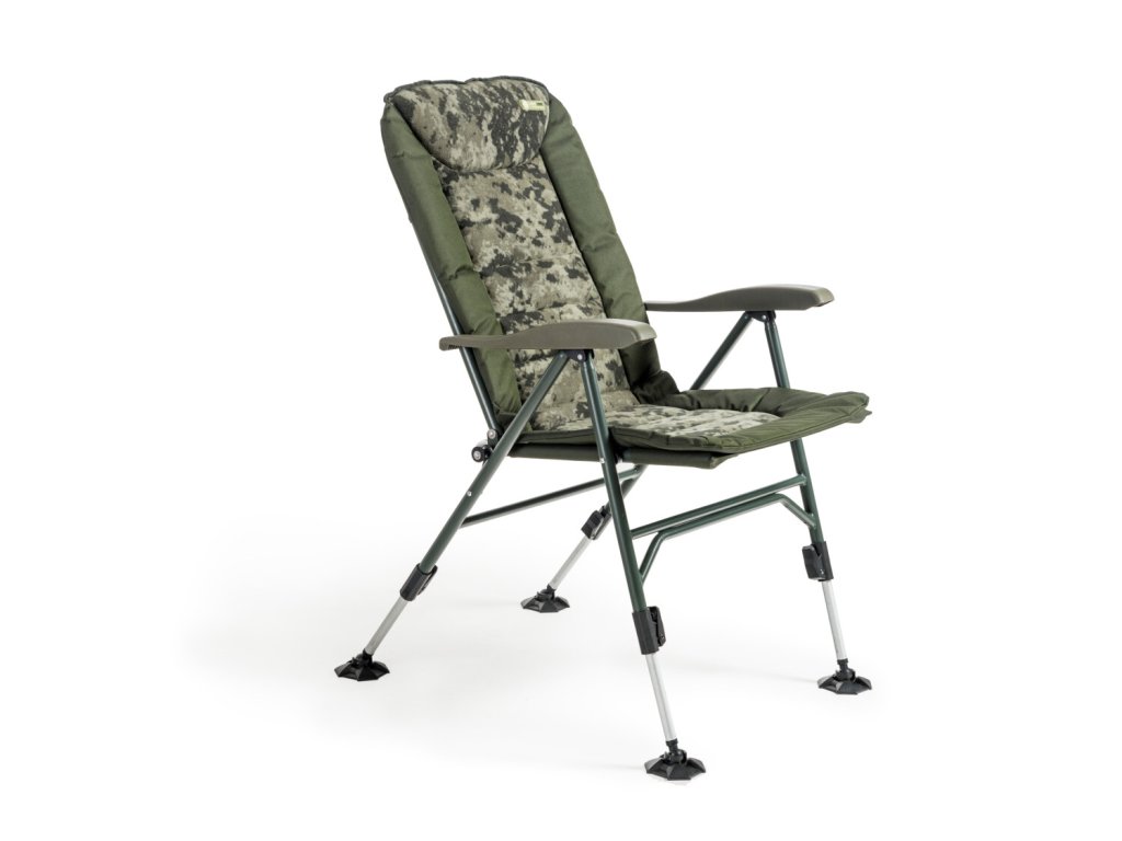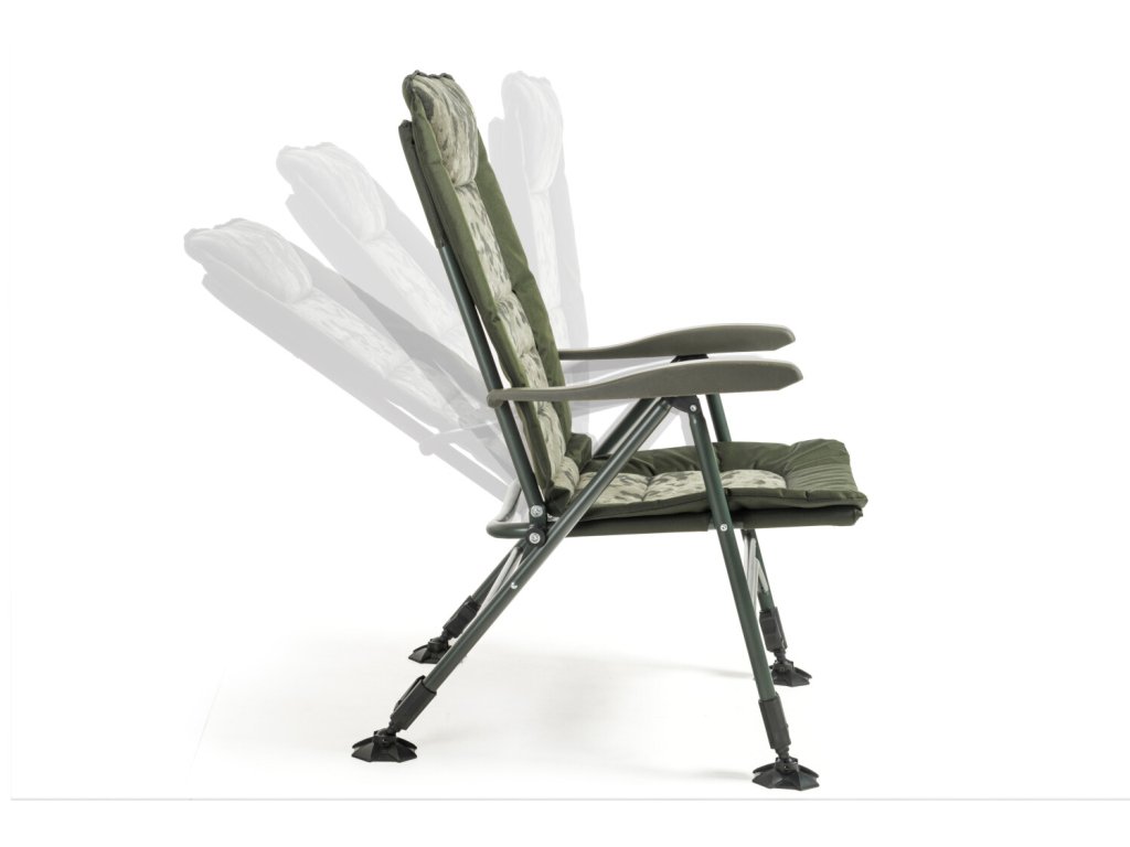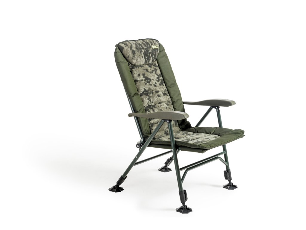 Luxusní verze našeho nejprodávanějšího křesla Comfort Quattro s extrémně pohodlnou fleecovou matrací v moderním designu CamoCODE. Využívá oblíbený a naprosto spolehlivý systém sklápění opěradla při nadzdvihnutí opěrek rukou. Je postaveno na extrémně lehkém a pevném hliníkovém rámu s nosností 160 kg. Křeslo je vybaveno nově navrženými patkami proti zaboření a novými zámky aretace nohou v unikátním designu Mivardi. Čtyři samovýsuvné teleskopické nohy lze ovládat jednoduchým stisknutím páčky aretace.