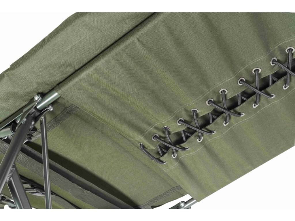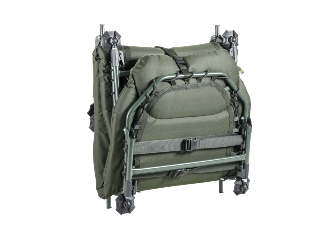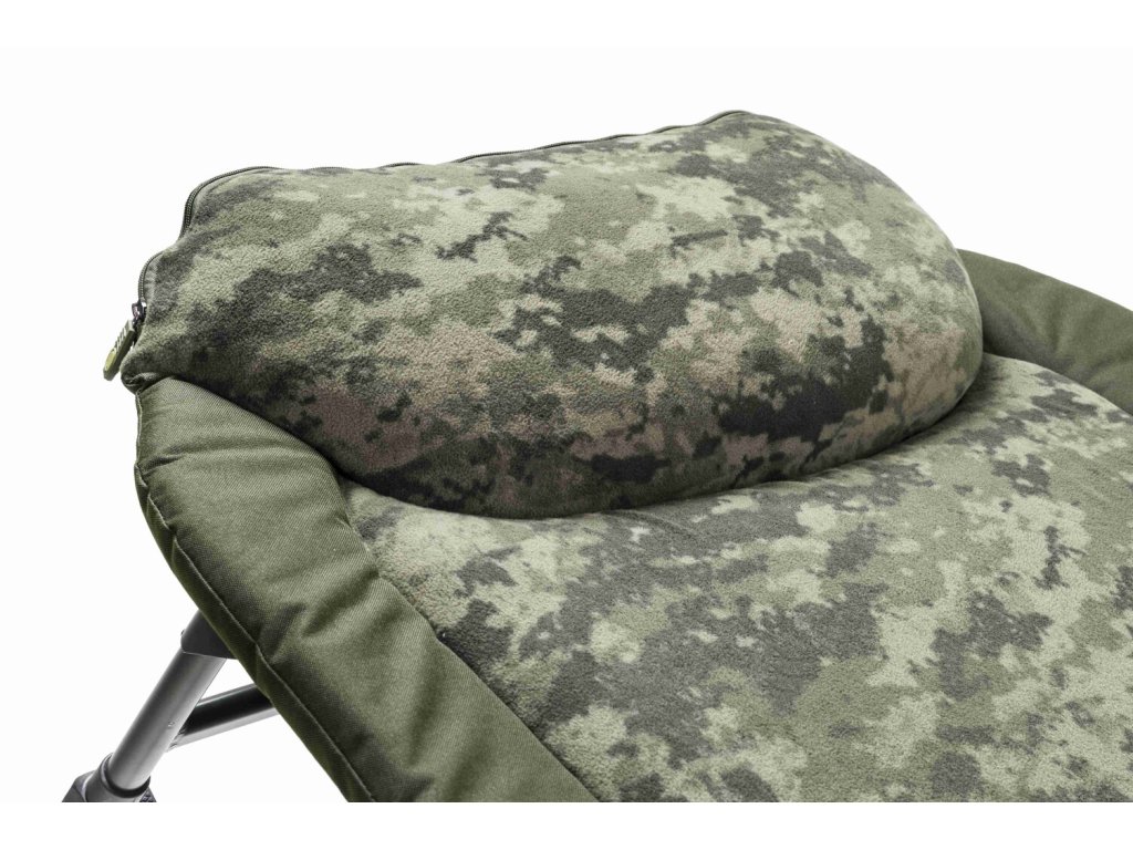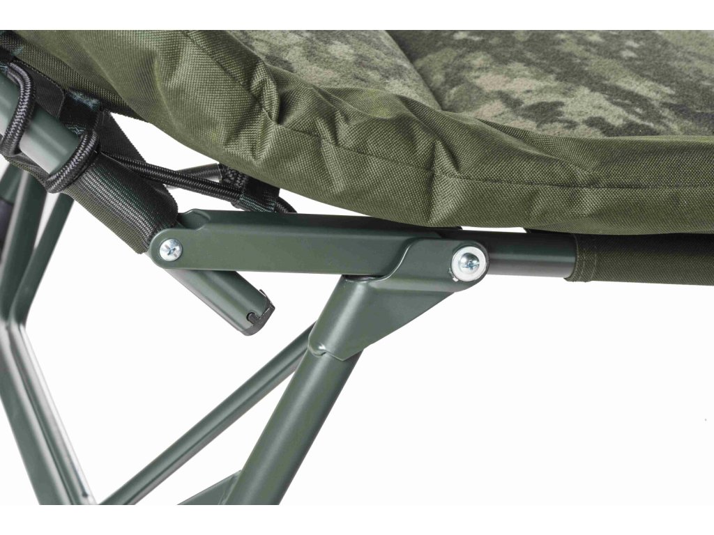 Extrémně lehké, velké a 100% ploché lehátko ve velice atraktivním designu s digitálním maskováním. Nadstandardně silná a velmi komfortní matrace s fleecovou vrchní vrstvou nabízí nejúčinnější systém regulace tuhosti pomocí elastického šněrování na spodní straně. Další výhodou jsou nohy s rozměrnými výkyvnými patkami a možností velkého vysunutí. Lehátko je dostupné ve variantě s osmi nebo se šesti nohami.