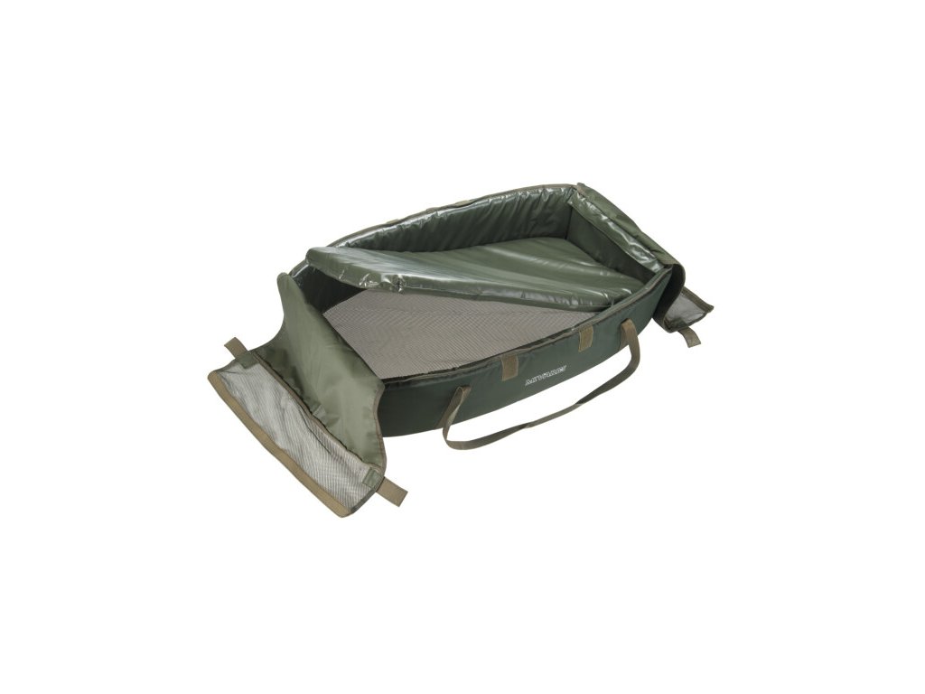 Rozměrná a skvěle polstrovaná podložka pod kapra. Vnitřní materiál je absolutně šetrný k rybě. Podložka je vybavena klekátkem a síťkovým víkem, které lze částečně nebo kompletně uzavřít pomocí suchých zipů.