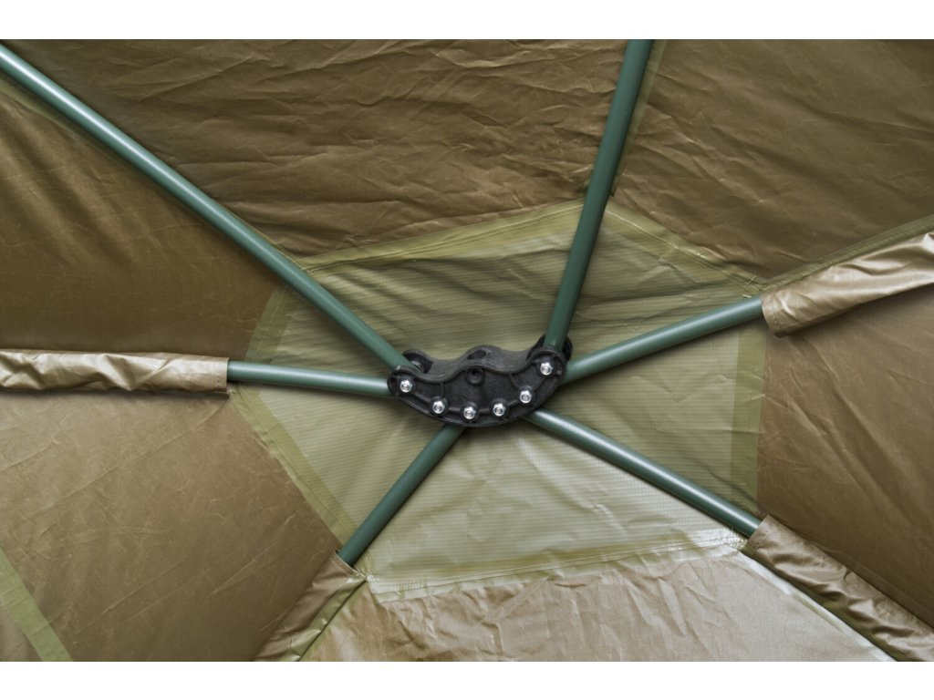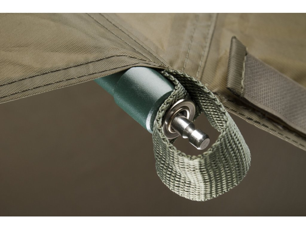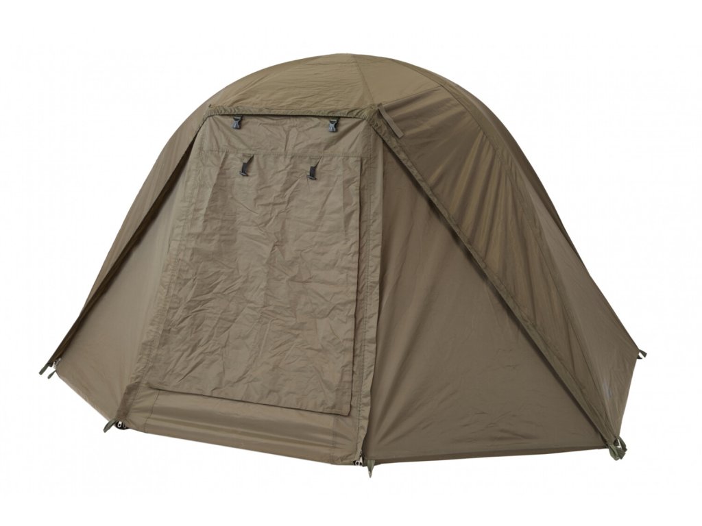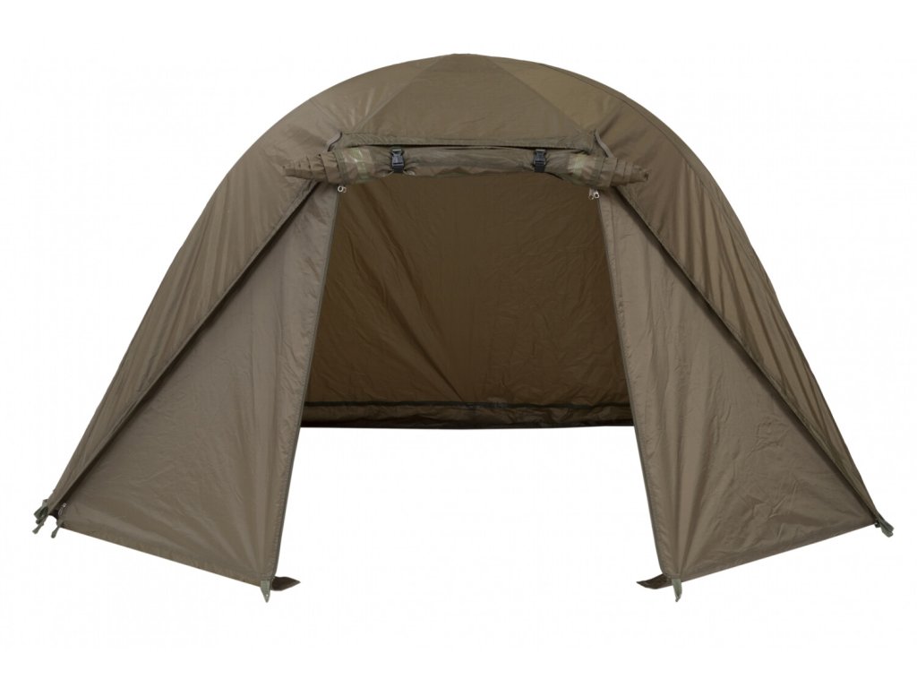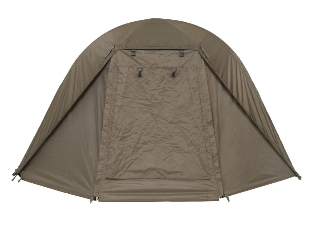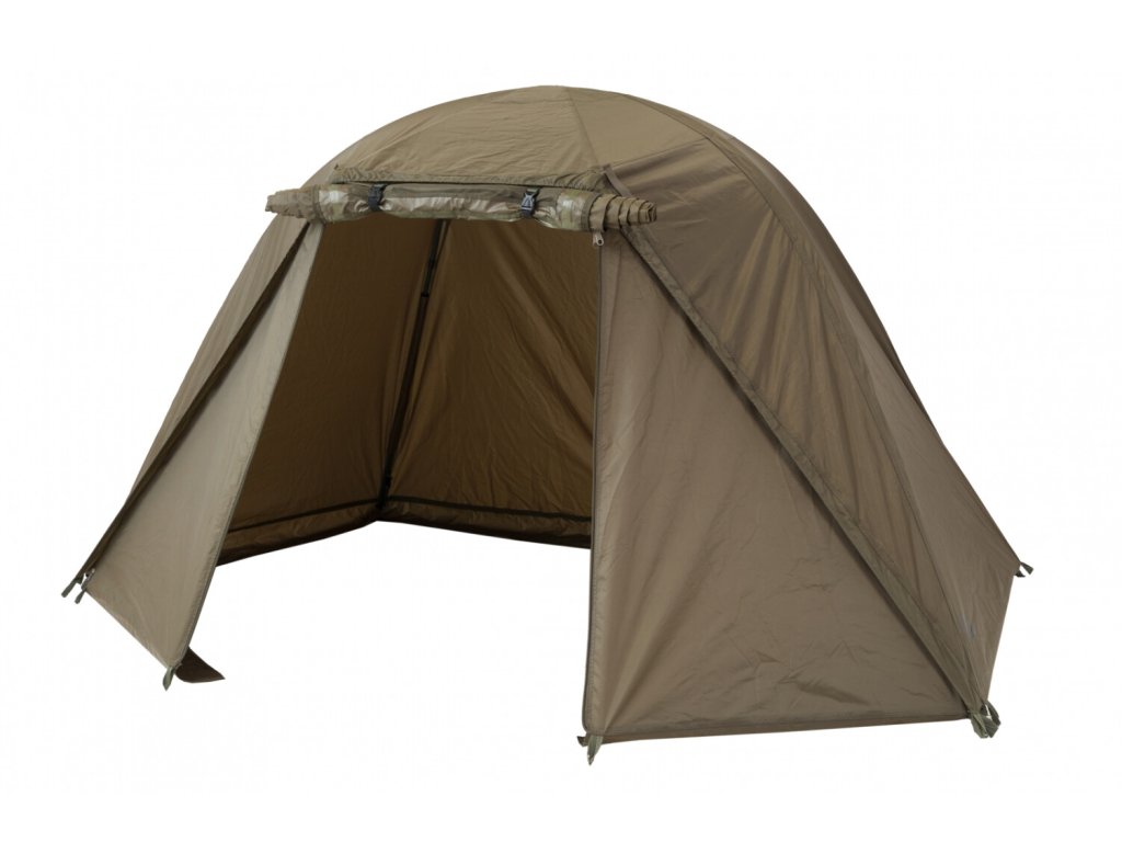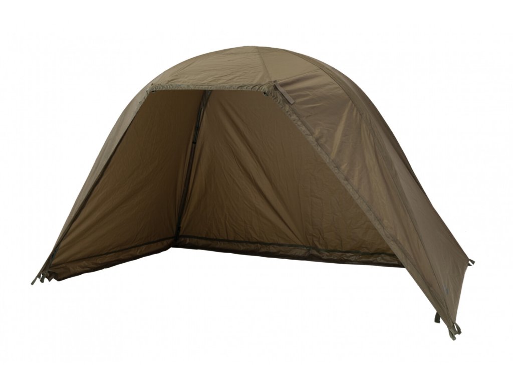 Mimořádně praktický přístřešek s minimální přepravní velikostí a hmotností pro použití s jedním lehátkem nebo dvěma křesly. Jeho rozložení a důkladné vypnutí pláště je otázkou okamžiku. Zavrtávací bivakové kolíky se postarají o spolehlivé ukotvení. Jednoduchá, ale důmyslně navržená konstrukce z masivních trubek zajišťuje maximální stabilitu i v nepříznivém počasí a pomáhá udržet extrémně nízkou hmotnost. Tomu napomáhá i plášť z materiálu 210D s vodním sloupcem 5000 mm. Důkladné podlepení švů je samozřejmostí. Přístřešek je dostupný v základní (otevřené) variantě nebo v kompletní sadě s odepínatelným předním panelem.