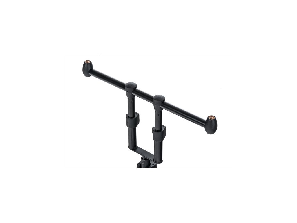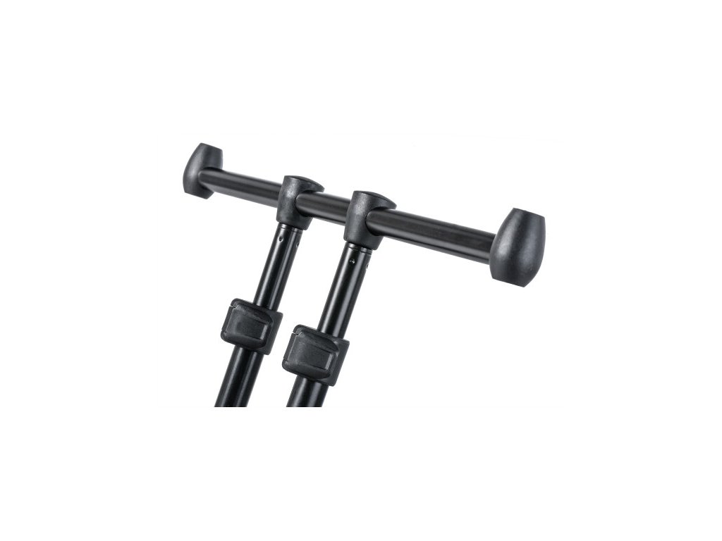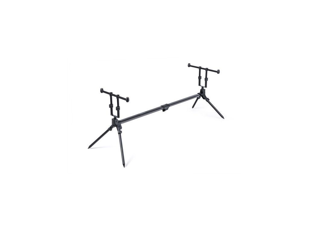 Kompaktní, lehký a dokonale stabilní stojan na pruty s unikátním systémem rychlého skládání. Nepotřebujete žádné šrouby. Rozložení všech částí, nastavení délky či vyklopení teleskopických noh je otázkou několika vteřin. Vše je řešeno unikátním systémem na zacvaknutí. Stojan je vybaven hrazdami na dva pruty s nastavitelnou výškou. Nastavit můžete i délku stojanu a samozřejmě i délku teleskopických noh. Stojan je ideální pro lov s krátkými stalkerovými pruty. V případě potřeby je možné stojan osadit hrazdami na tři pruty, dostupnými samostatně.