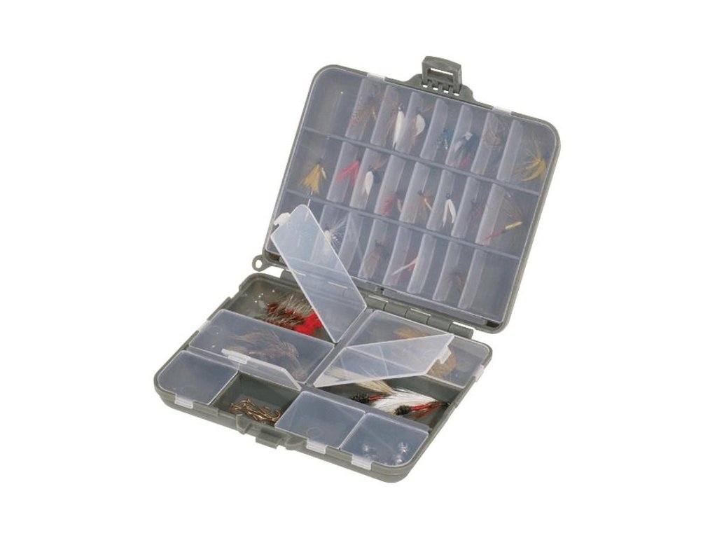 Oboustranná rozevíratelná krabička s možností variabilního uspořádání oddílů, vhodný zejmna na malé nástrahy a mušky.