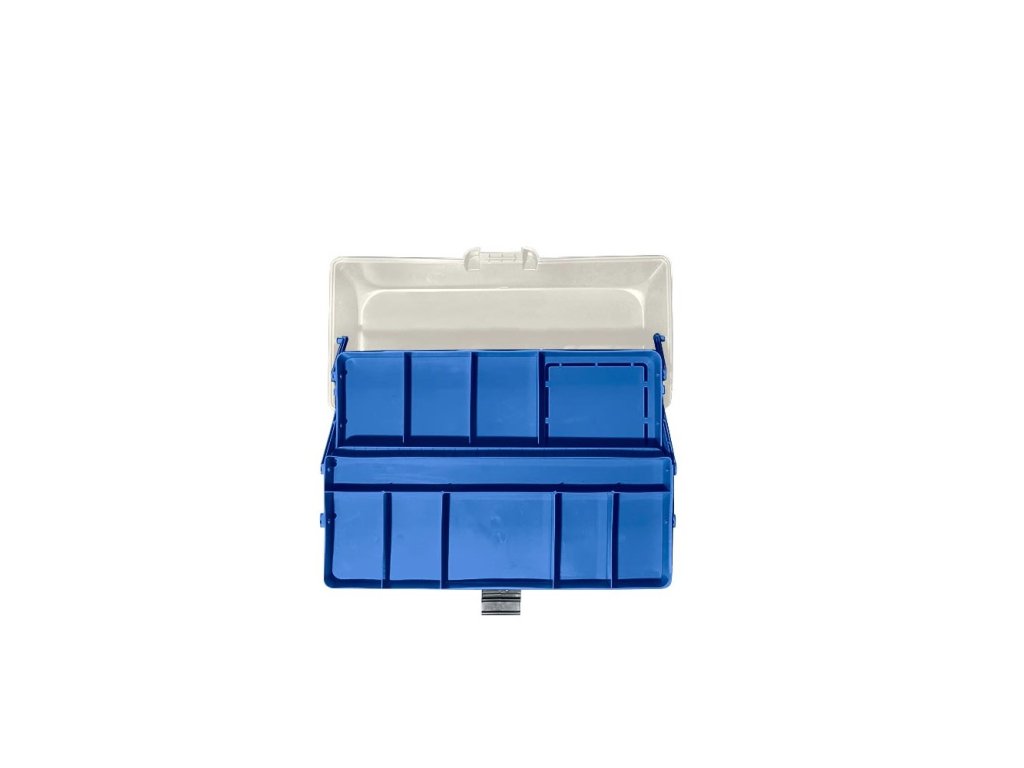 Společnost Plastica Panaro používá vysoce kvalitní EKO plast, který je 100% recyklovatelný. Díky tomu přispívá na snížení plastového odpadu. Dvoupatrový kufřík pro vaše rybářské doplňky.Nechybí ergonomické madlo pro snadný transport. Materiál je polypropylen. Uzamčení kufříku bezpečnostním klipem. Specifikace: - barva: bílo-modrá - vnější rozměry: 335 x 153 x 148 mm - hmotnost: 0,75 kg
