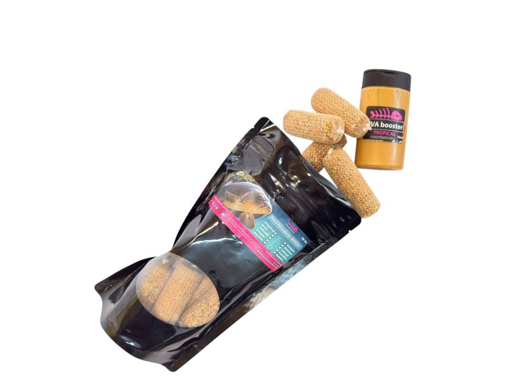 Plněné PVA punčochy s boosterem jsou hotové PVA pančuchy s náplní drcené krmné směsi a atraktorů, připravené přímo k nahazování. Mix vzniká z jemně drcených zbytků boilies a částic různých příchutí, které společně vytvářejí silný potravní signál. Každá punčocha má průměr cca 25 mm a délku cca 6 cm, a je dodávána v zip sáčku, který udržuje sucho a čerstvost. Balíček obsahuje booster ve stejné příchuti, který náplň ještě zvýrazní po dopadu do vody.