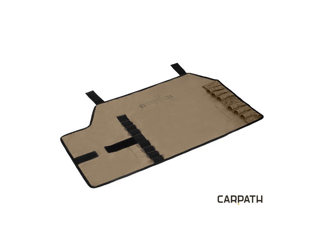 Delphin Area STICK je praktický obal na vidličky vyrobený z poměrně hrubé textilie, která je pouze z vnitřní strany pogumovaná, a proto je možné vnitřní stranu i lehce očistit od případných nečistot. Je navržen tak, abychom do něj uložili až 8 ks vidliček i hrubšího průměru, které mají ostrý hrot jako například naše C-STICK nebo D-STICK. Proto jsme spodní část, která je určena pro zasouvání hrotů, vybavili hrubým a zesíleným materiálem. Nyní se vám už nestane to, že by vám ostrý konec propíchl tašku nebo jinak poškodil věci uložené v ní. Obal s vidličkami jednoduše srolujete a zafixujete suchým zipem, který slouží i jako ochrana proti poškrábání. Pouzdro má na vrchní straně našitý popruh, který slouží jako madlo pro přenos pouzdra. Dodávaný je v naší jedinečné hnědé Carpath kamufláži se siluetami kaprů. Technické parametry: Rozměr obalu - rozložený: 95x55cm Rozměr obalu - složený: 80x20cm Max. rozměr složené vidličky: 80cm Kamufláž CARPATH je unikátním a patentovaným designovým vzorem, který v sobě skloubil maskovací vizuál kamufláže a siluety kaprů, které tuto kamufláž tvoří. Tento jedinečný a neopakovatelný návrh pochází kompletně z dílny značky Delphin a posouvá hranice vašeho rybářského vybavení do zcela nové dimenze.