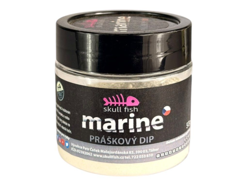 Práškový dip Marine je vysoce atraktivní práškový dip, který se po kontaktu s vodou změní v účinný gel a pevně ulpí na nástraze, čímž vytváří silný pachový a vizuální signál ve vodním sloupci.