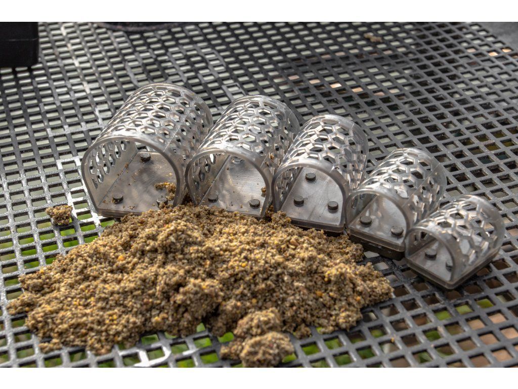 Náš revolucní materiál Hexmesh zajištuje optimální uvolnování krmení pri zachování jednoduchého “zátkování” krmení a živých nástrah do krmítka.