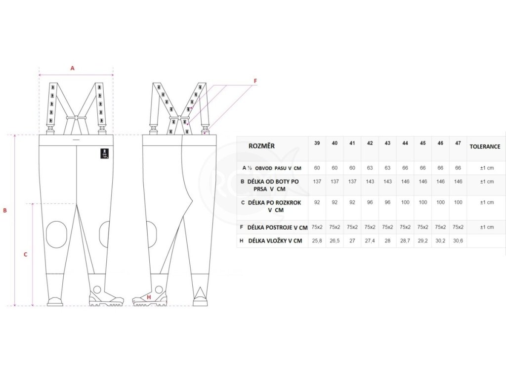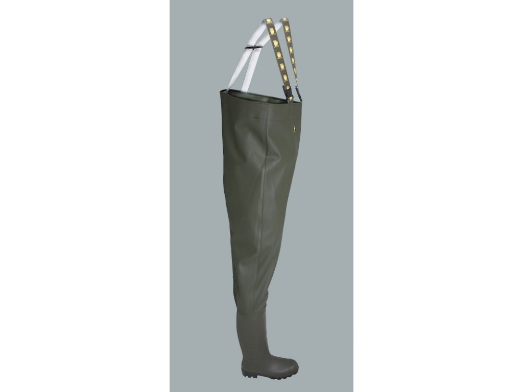 Exkluzivní brodící holínky s označením SB01 značky PROS, která patří mezi největší výrobce nepromokavé obuvi v Evropě. Holínky jsou vyrobeny z originálního materiálu PLAVITEX s tloušťkou 0,7mm (zesílený PVC / Polyester) 7005g / m2. PLAVITEX je extrémně odolná technická tkanina odolná vůči mechanickému poškození, která je doplněna dvojitými podlepenými švy zabezpečujícími dokonalou odolnost proti přetečení. Exkluzivita těchto kozaček dotvářejí kvalitní boty 400P s pevnou černou podrážkou. Samozřejmostí jsou elastické šle s rychlopřezky, stahovací šňůrka na hrudi, vnitřní kapsa a také certifikát produktu splňující požadavky Evropské normy EN343 o voděodolnosti.