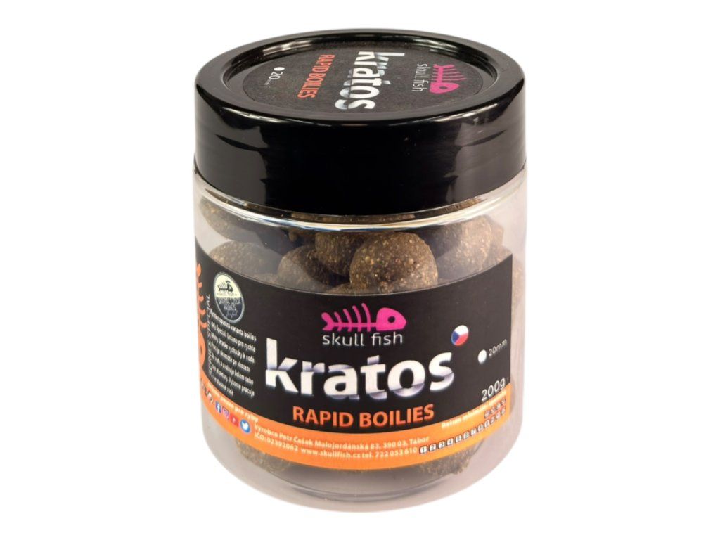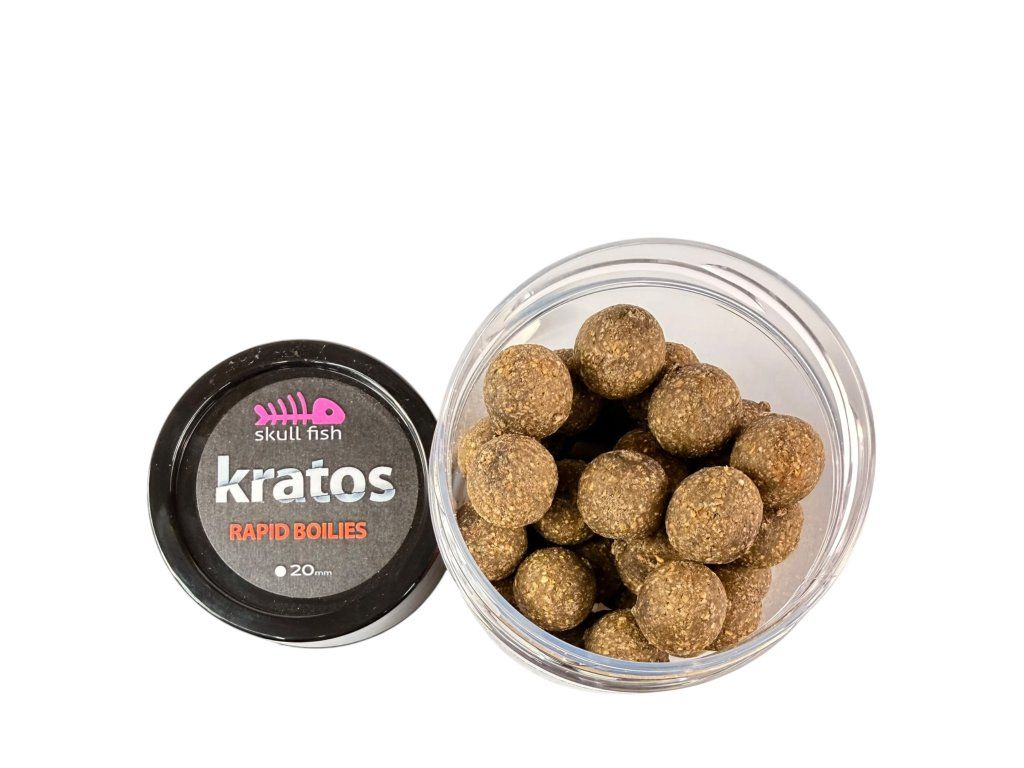 Boilies RAPID Kratos je rychlorozpustná varianta klasického boilies, která začne pracovat téměř okamžitě po vhození do vody. Je postavené na stejném mixu jako řada Special, ale upravené tak, aby dosáhlo maximálně rychlé účinnosti.