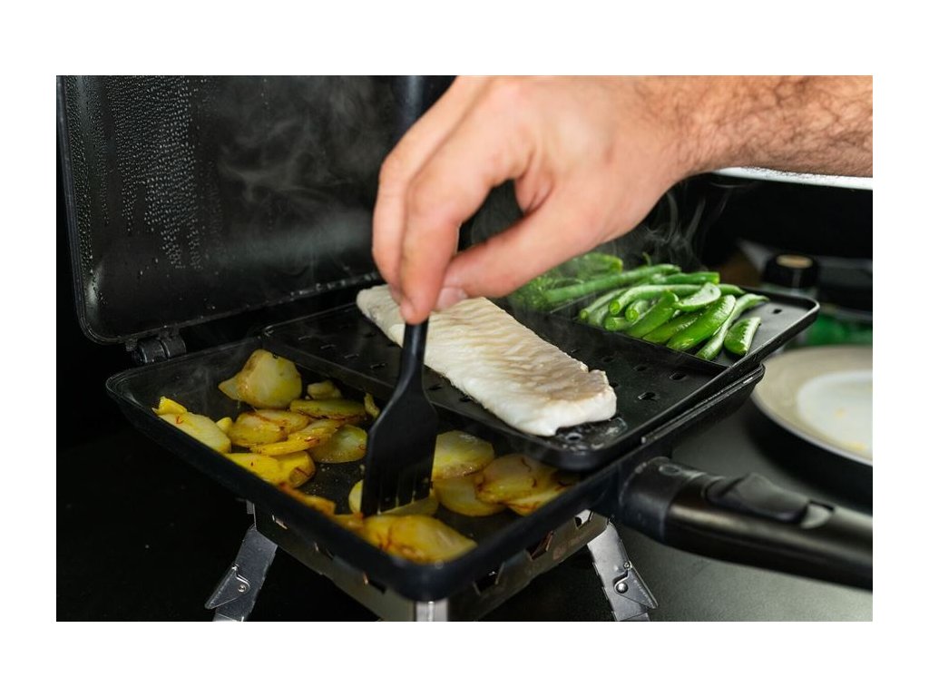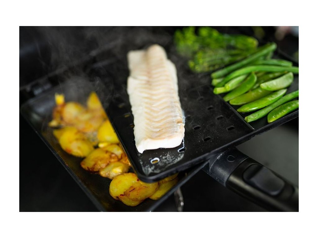 Proč používat několik různých pánví, když si můžeme uvařit celou řadu mega dobrot v jediném univerzálním balení! Díky čtyřdílné snídaňové pánvi, tradiční hluboké pánvi a napařovacímu tácu vám RidgeMonkey Combi Connect and Steamer Set nabízí nepřeberné množství různých jídelních variací a to nejen na rybách, ale i ve vaší domácí kuchyni. Díky unikátnímu designu mohou být od sebe pánve odděleny a použity zcela nezávisle na sobě. Už nikdy nebudete potřebovat jinou pánev! Samozřejmostí jsou odnímatelná držadla pánve kvůli snadnějšímu uložení, či transportu. Nově je součástí balení také napařovací tác pro přípravu pokrmů a zeleniny nad párou!_Specifikace:• Lehká hliníková litina• Fluorpolymerový nepřilnavý povrch pánví • Odnímatelné rukojeti pro snadné uskladnění a přepravu • Horní část se chová jako víko pro udržení tepla, chuti a vlhkosti• EUIPO registrovaný vzor • Vhodná na všechny druhy sporáků s výjimkou indukčních • Rozměry (bez rukojetí): 300 mm x 255 mm x 70 mm• Rozměry (bez rukojeťmi): 440 mm x 255 mm x 70 mm