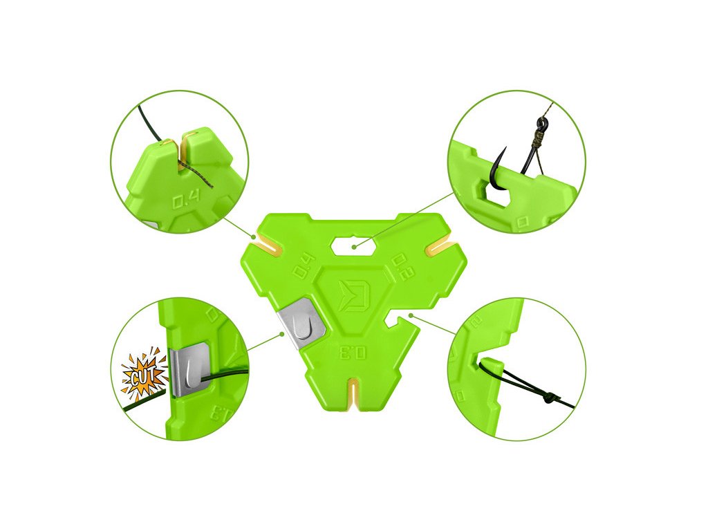 Multiskin disponuje i ostrou čepelkou, sloužící k řezání šňůr či vlasců. Během vázání návazce tak již nebudete potřebovat žádné nůžky, kleště či utahovače.