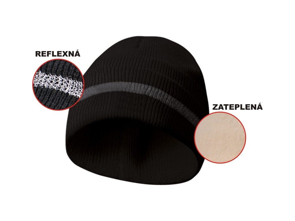 Extrémně teplá čepice v černé barvě s reflexním páskem po obvodu a originální 3M Thinsulate podšívkou.