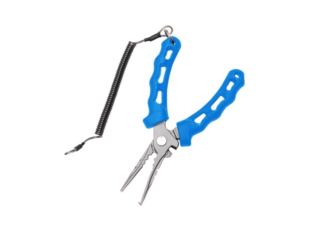 Kleště mají vestavěný super ostrý zadní nůž, krimpovací část a otvírač kroužků..