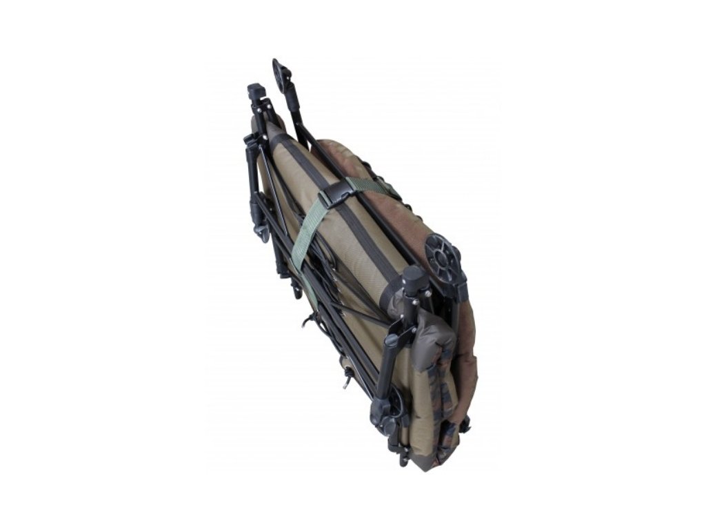 Camo Condor Bedchair představuje zbrusu nový produkt patřící do exkluzivní camo edice produktů značky ZFISH. Jedná se o ploché, osminohé a pohodlné lehátko pro příznivce camo stylu. Toto lehátko poskytuje maximální komfort pro spaní v přírodě. Konstrukce lehátka byla navržena tak, aby šlo lehátko snadno sbalit i s velkým zimním spacákem. Lehátko má velmi silné polstrování z mikrofleecu, které Vás ochrání před vlhkem a chladem. Okraj lehátka je vyroben z prvotřídního materiálu "RIP STOP" Camo, disponující snadnou údržbou, dlouhou životností a je rychleschnoucí. Tuhost matrace je libovolně nastavitelná pomocí chytrého systému šněrování na spodní straně lehátka. velmi silná a odolná konstrukce z ocelových profilů naprosto rovný profil pro vynikající komfort při spánku silné polstrování z mikrofleece materiálu šněrování ve spodní části k regulaci tuhosti matrace velký, příjemný polštář široké patky na nohou stahovací popruh pro snadný transport Technické parametry: Celkové rozměry: 203 x 85 cm Transportní rozměry: 85 x 87 x 30 cm Výška lehátka: 30 až 40 cm Počet nohou: 8ks (4 páry) Celková váha: 10 kg Nosnost do: 150kg