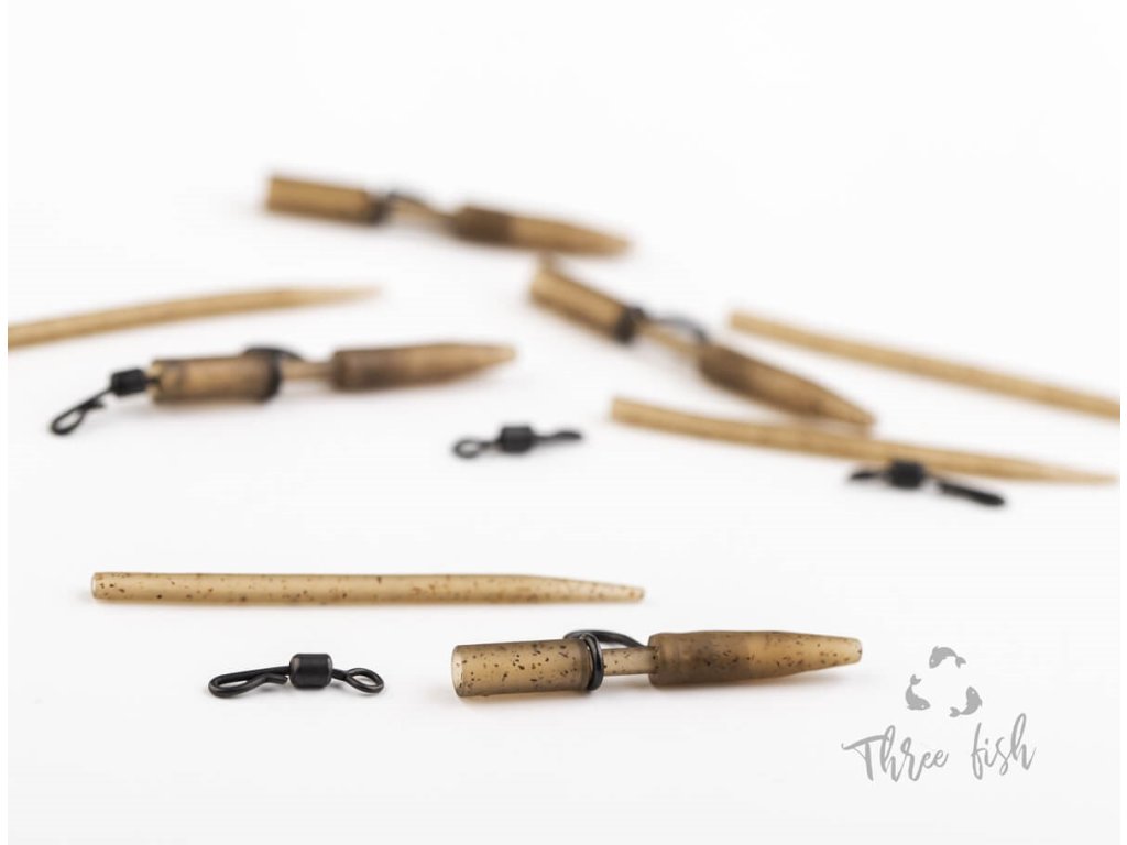 Prémiové Heavy duty závěsky s převlekem prvotřídní kvality. Klip na olovo je vybaven speciálním kovovým ramínkem, které je pevnější než jakákoliv jiná plastová závěska. Vhodné pro extrémní náhozy s těžkými zátěžemi. U závěsky je kladen důraz na perfektní funkčnost i při použití silných šokových vlasců. Plně kompatibilní se všemi pevnostními obratlíky velikosti 8 i Quick Change obratlíky pro rychlou výměnu návazce. Barva "INVISIBLE Z-CAMO" (zcela nová, dlouhodobě vyvíjená, speciální kamuflážní barva v kombinaci s průhledností materiálu zajištuje, že tato řada bižuterie je na dně pro ryby těměř neviditelná). Tato zcela nová řada s označením "3Fish", to je bižuterie v prémiové kvalitě, kdo jednou zkusí a pozná ten rozdíl, jiné už chtít nebude.